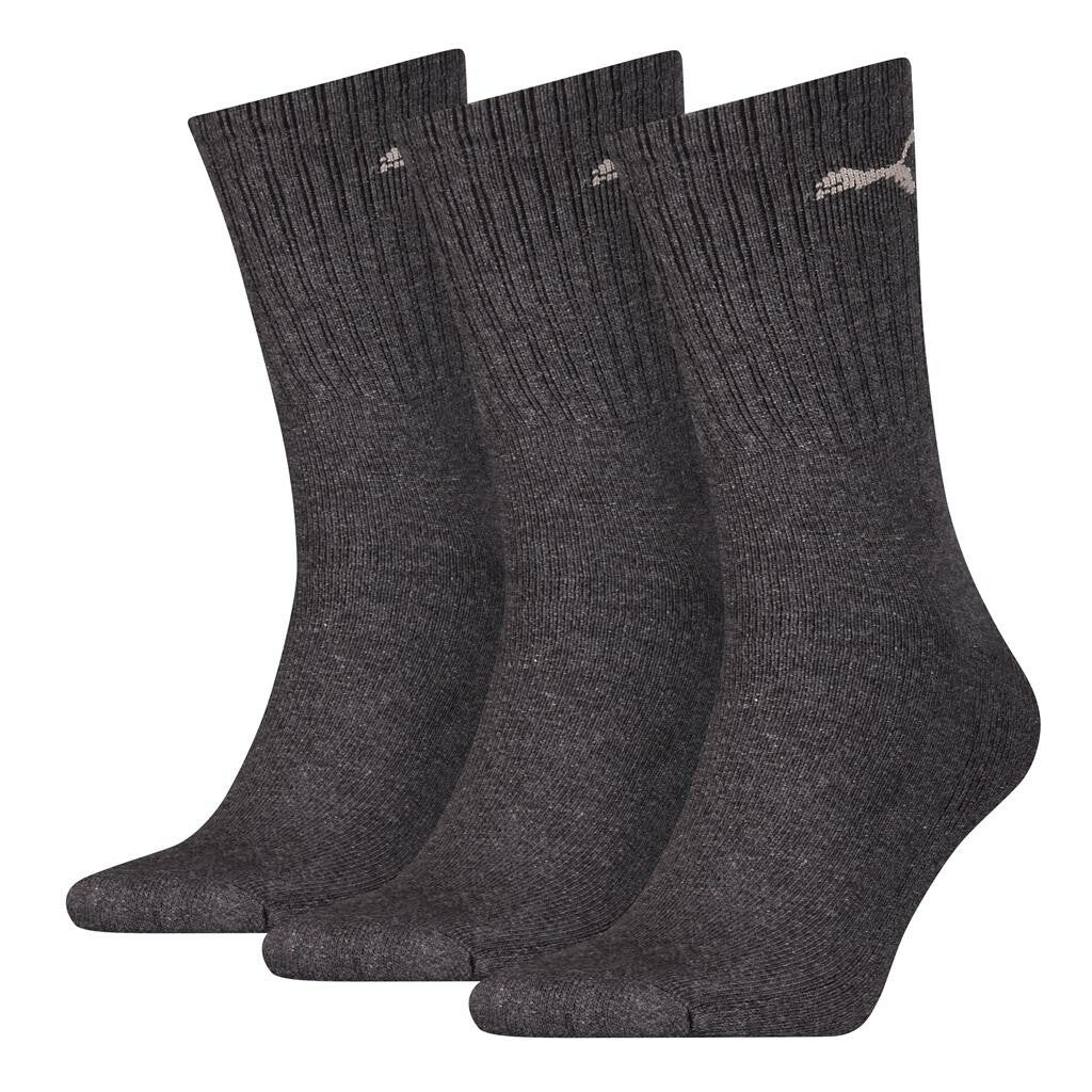 Drie paar Puma sportsokken met badstofzool in de kleur anthracite.